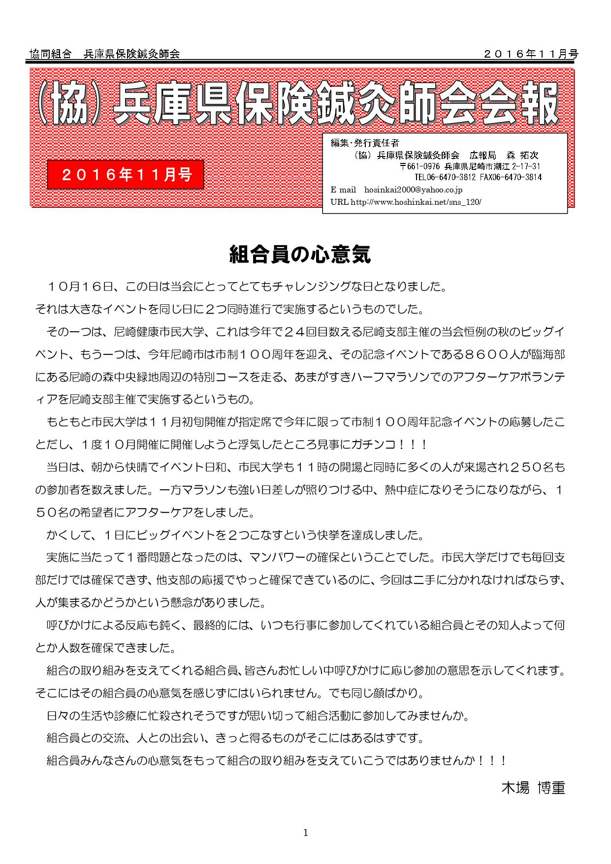 兵庫県保険鍼灸師会会報2016年11月号を発行致しました。10月16日、この日は当会にとってとてもチャレンジングな日となりました。