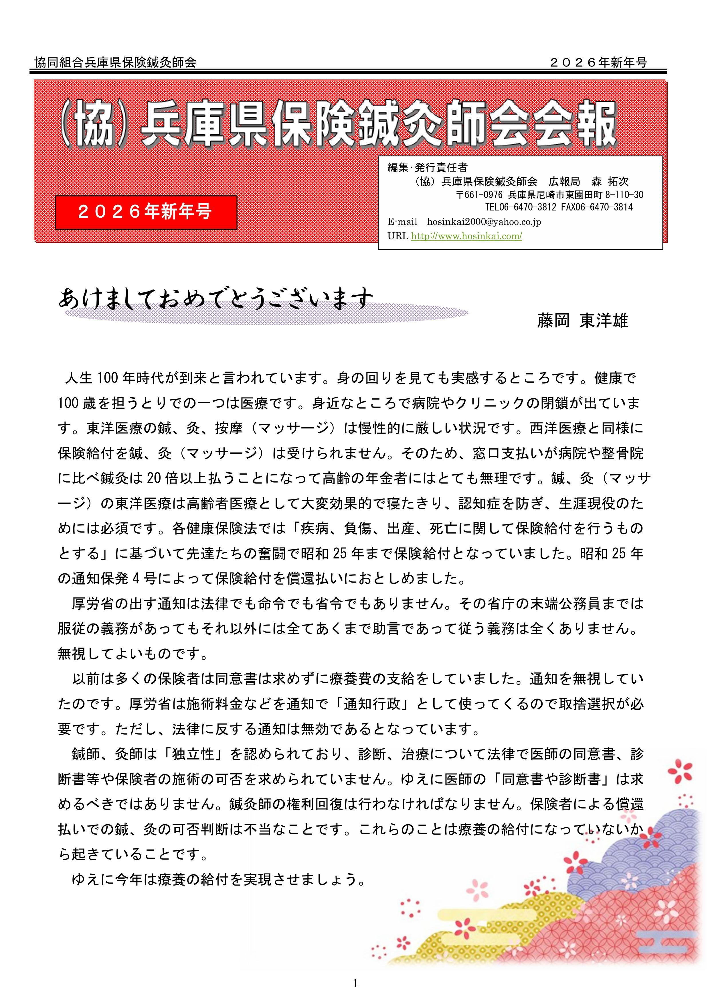 兵庫県保険鍼灸師会会報2026年1月号を発行致しました。